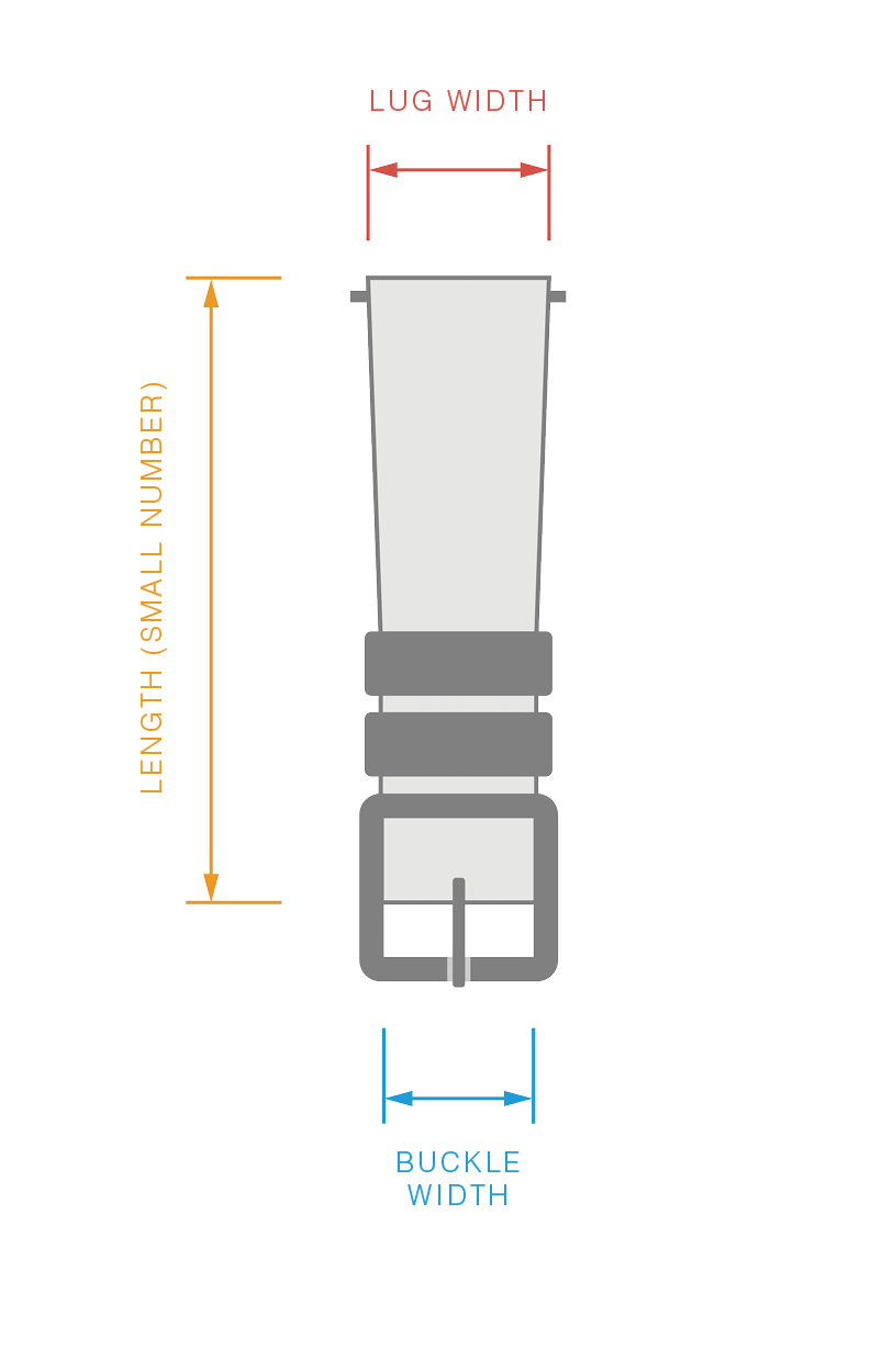 في حال كنتم غير متأكدين من الحجم الذي ترغبون بالحصول عليه، يجب عليكم قياس الحزام الحالي بالمليمتر، ثم اختاروا الحجم الأقرب لطول حزامكم. اختيار القياس المناسب هو مسؤوليتكم لضمان تناسب الحزام مع المعصم. عند رغبتكم بحزام لساعتكم بقياس غير مدرج أدناه، يرجى التواصل معنا لمناقشة الخيارات المختلفة.